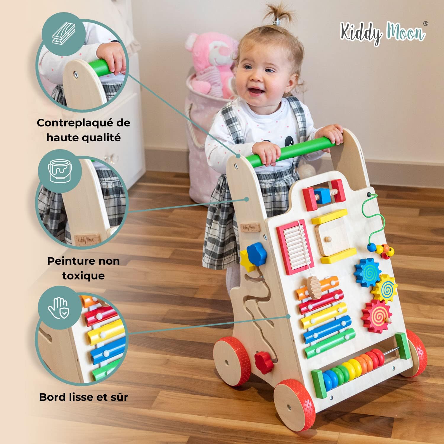 Chariot parfait pour des bébés qui commencent à marcher. Les nombreux jeux d'éveil sont également bien adapté. Attention le montage du chariot demande de bien suivre la notice. Le colis est arrivé rapidement et en avance.