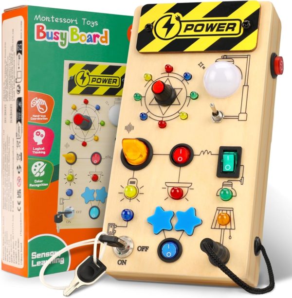 Découvrez la Planche d’activité Montessori Ophy Busy Board, un jouet en bois éducatif alliant motricité fine, coordination œil-main et créativité grâce à ses 9 interrupteurs, 16 LED douces pour les yeux de votre enfant et ses multiples activités colorées, le tout avec une conception sûre et durable.