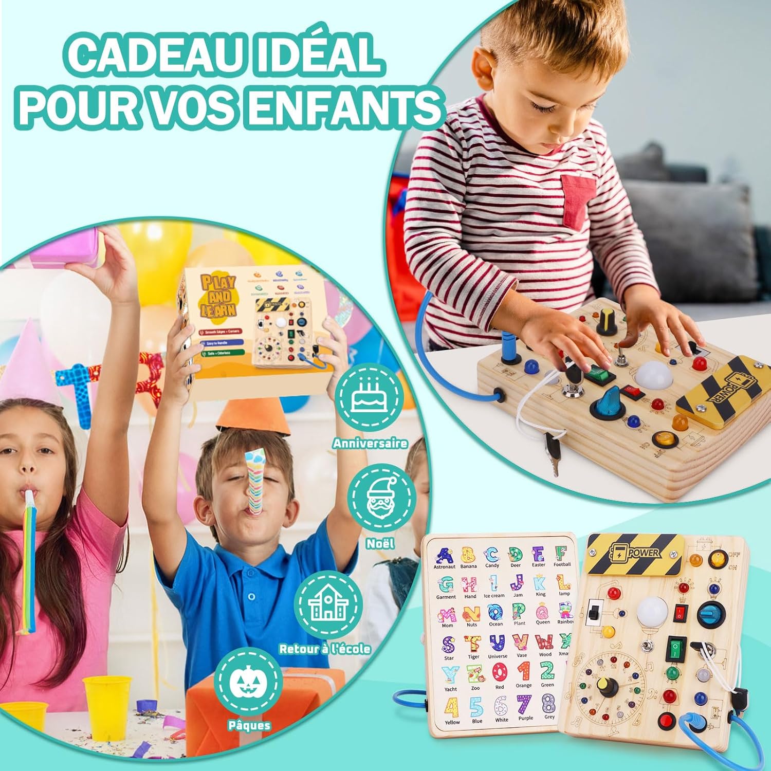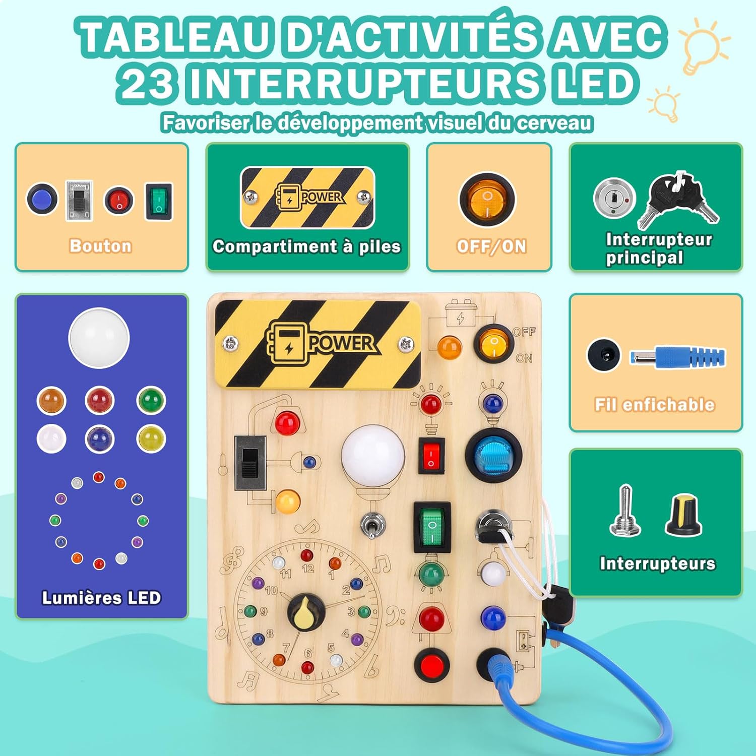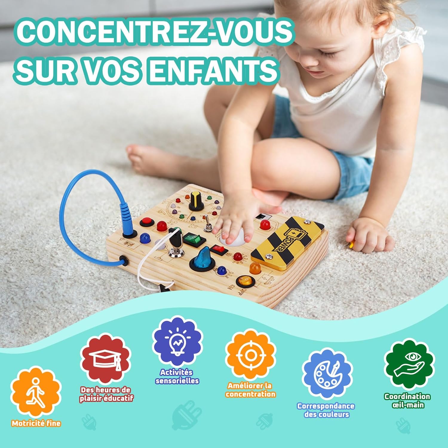 Planche d’activités Montessori avec interrupteurs et lumières LED pour enfants