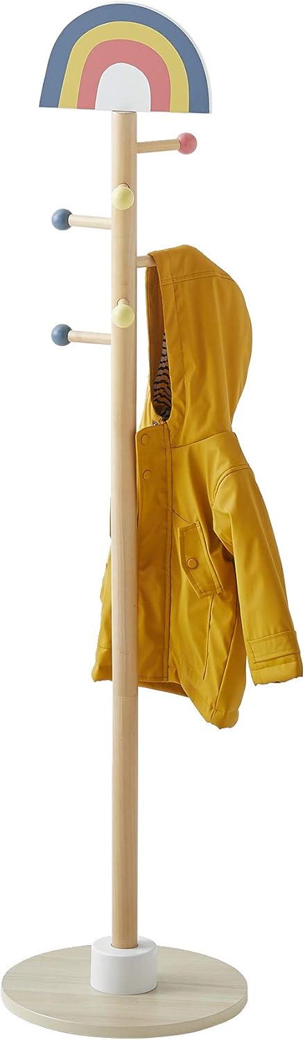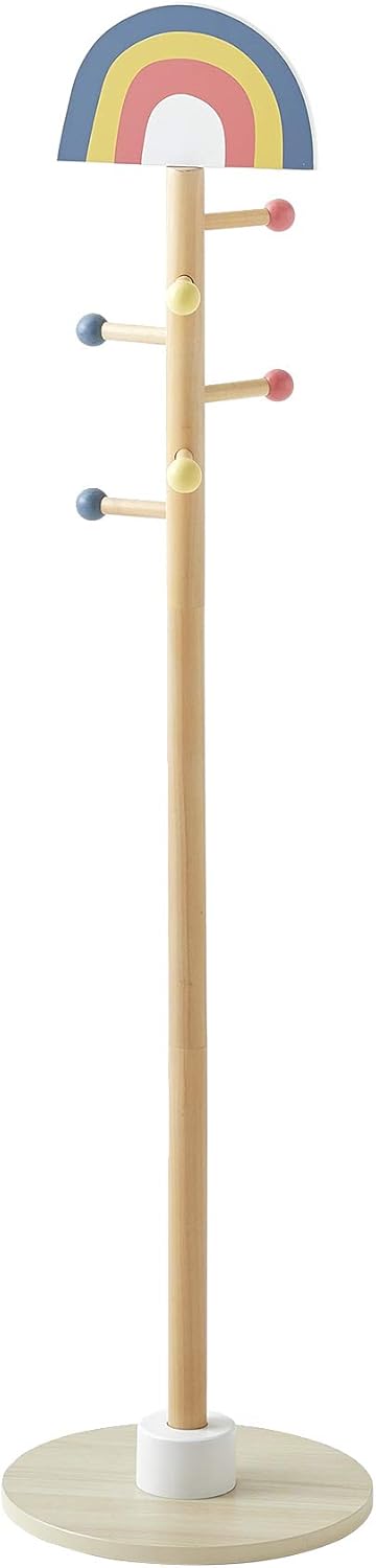 Le sommet du porte-manteau arbore un superbe motif d’arc-en-ciel, véritable clin d’œil à la créativité et à la joie enfantine. Cette touche graphique unique en fait bien plus qu’un simple objet utilitaire : c’est aussi un élément décoratif qui s’intègre parfaitement dans une chambre d’enfant ou une salle de jeux. Sa structure légère mais robuste garantit stabilité et durabilité, tout en restant facile à déplacer au besoin.