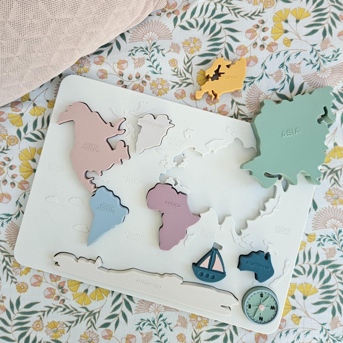 Puzzle éducatif en silicone pour enfants dès 3 ans – continents et mers du monde