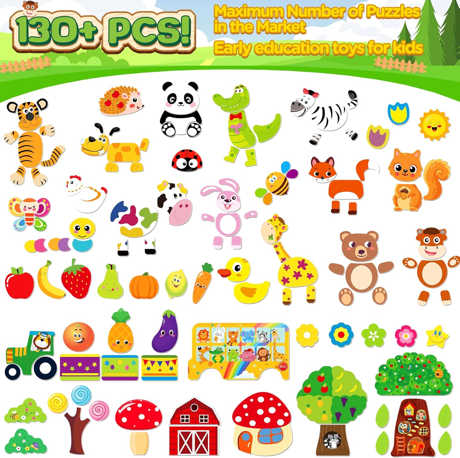 Le puzzle magnétique en bois de 130 pièces est bien plus qu’un simple jouet. Conçu pour éveiller la curiosité des enfants dès 3 ans, il propose une expérience ludique et éducative unique. Avec ses quatre thèmes captivants – la forêt, la ferme, les fruits et le bus – ce puzzle invite les petits à explorer des univers variés tout en développant leur créativité. Grâce à ses motifs colorés et riches en détails, chaque pièce devient une opportunité d’apprentissage amusante.