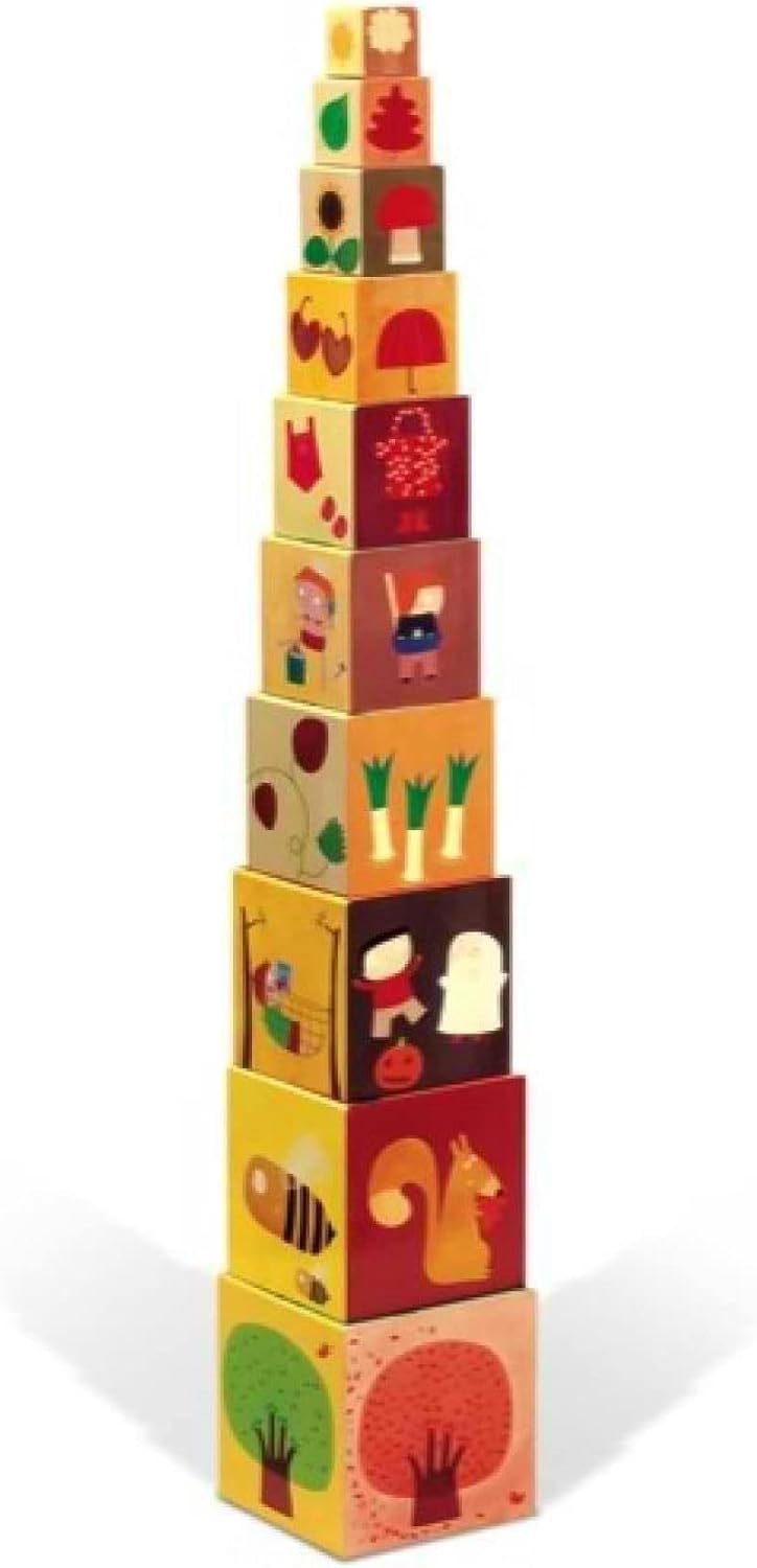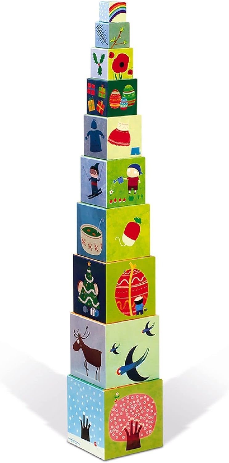Éveillez la créativité et la motricité de votre enfant dès 1 an avec cette pyramide carrée à empiler, illustrée sur le thème enchanteur des 4 saisons.