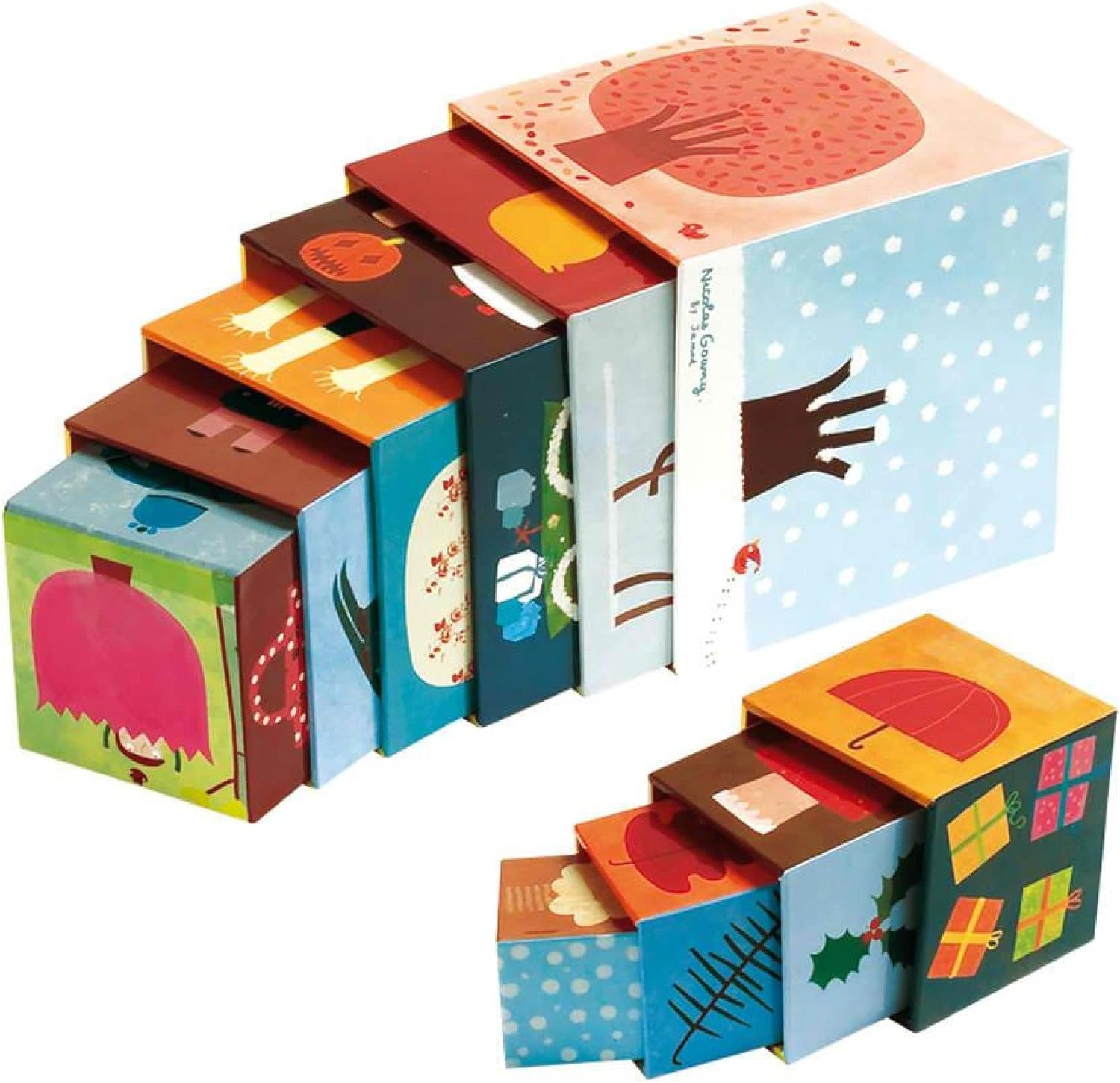 Chaque face de ces cubes représente des scènes détaillées et inspirantes mettant en lumière les merveilles du printemps, de l’été, de l’automne et de l’hiver. Les enfants découvrent ainsi les animaux, les plantes et les éléments emblématiques de chaque saison tout en s’amusant à empiler les cubes pour former une pyramide harmonieuse. Ce jouet ne se limite pas seulement à empiler : les cubes peuvent également être disposés côte à côte pour créer une fresque panoramique époustouflante, favorisant ainsi le développement de la créativité.