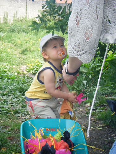 Brouette achetée pour permettre à notre fils de 3 ans de participer à nos travaux de jardinage . Livraison rapide et sans soucis . Très belle brouette , solide , livrée avec une paire de gants en tissu , une pelle et un râteau . Très stable et facilement utilisable par les plus petits . Mon fils l'a trouve tellement belle qu'il refuse de la salir en mettant des herbes dedans . Elle sert donc de chariot de promenade pour nounours ! Mon fils est content , cela l'amuse beaucoup ! Actuellement , il ne prête pas beaucoup d'intérêt aux autres accessoires . Je recommande cet article