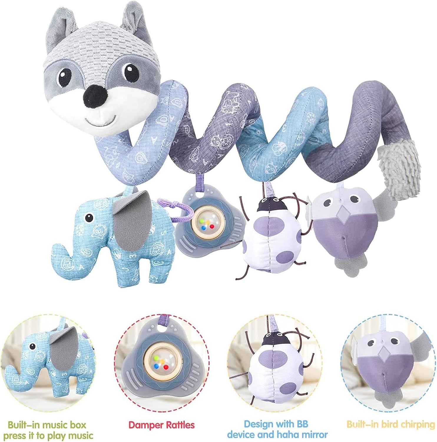 Chaque élément suspendu de cette spirale d’activité a été pensé pour capter l’intérêt des tout-petits. En secouant ou en pressant les adorables figurines en peluche, un son de cloche doux se fait entendre, éveillant la curiosité naturelle de votre enfant. Ces sons délicats contribuent à stimuler son ouïe tout en développant sa coordination main-œil de manière ludique et intuitive.