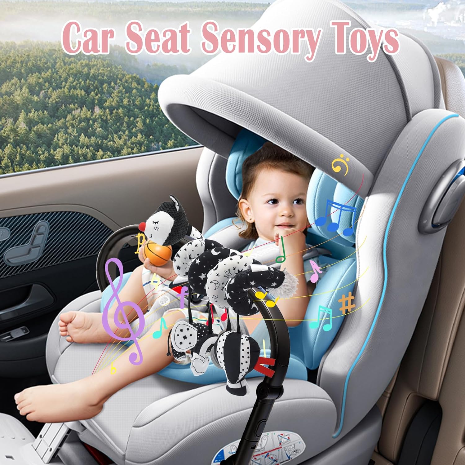 Éveillez les sens de votre bébé avec cette spirale d’activité sensorielle en tissu doux, dotée de jouets noirs, blancs et rouges, parfaits pour stimuler la motricité, la vue et l’ouïe dès la naissance.