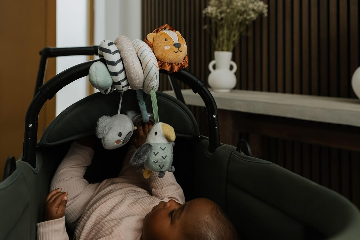 Mon bébé a vraiment adoré cette spirale. Je l'ai fixée sur son siège-auto et il adore jouer avec pendant les trajets en voiture. Au début, sur le siège-auto, j'ai trouvé qu'elle était un peu courte pour qu'il puisse l'attraper, mais maintenant qu'il est un peu plus grand, il la saisit facilement et s'amuse avec. La qualité de l'article est très bonne. La texture, les petits animaux et les couleurs sont très attractifs pour le bébé. C'est le jouet parfait pour divertir bébé !