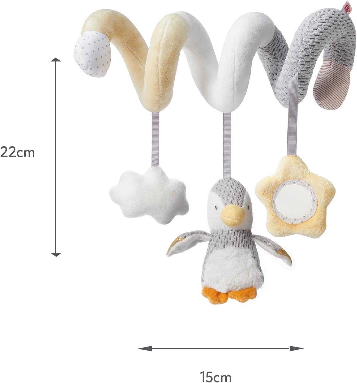 Offrez à votre bébé des moments d’éveil ludique avec cette spirale d’activités douce et sensorielle, idéale pour la poussette ou le lit, favorisant le développement moteur et la découverte grâce à ses formes et sons variés.