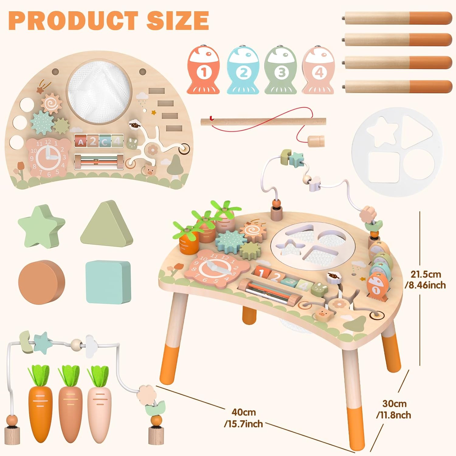 La table d’activités Montessori en bois est bien plus qu’un simple jouet. Conçue pour les enfants dès l’âge de 1 an, elle propose une expérience ludique et éducative grâce à ses neuf activités captivantes. Parmi elles, vous retrouverez un trieur de formes, un jeu de pêche, un labyrinthe de perles, une récolte de carottes, une horloge éducative, des engrenages colorés et un boulier. Ces activités ne se contentent pas de divertir : elles stimulent la créativité, renforcent la motricité fine et aiguisent la curiosité naturelle des enfants. Chaque moment passé avec cette table devient une opportunité d’apprentissage précieuse.
