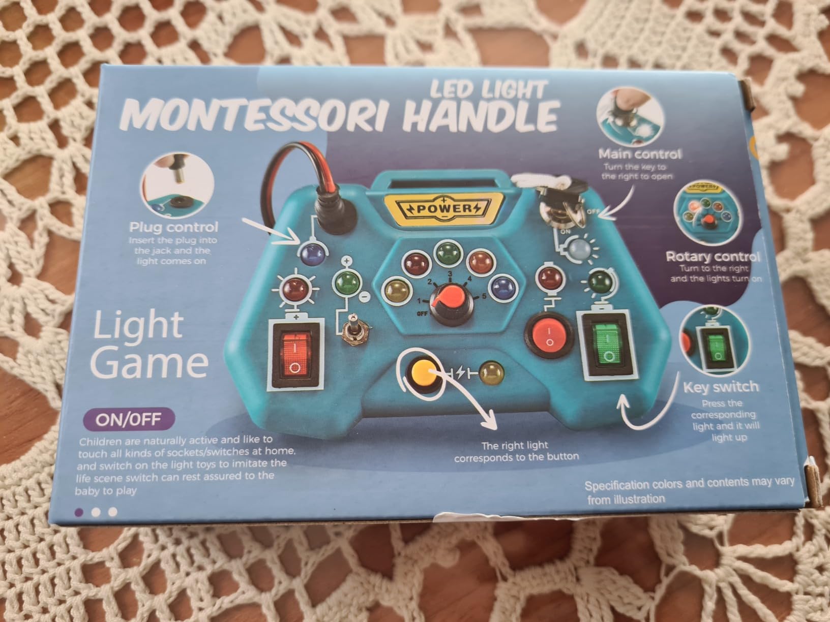 Ce tableau propose six types différents d’interrupteurs. Votre enfant peut tourner une clé, insérer un fil, appuyer sur un bouton ou encore pousser un levier. Chaque action contribue à améliorer la coordination œil-main, une compétence essentielle dans le développement de l’enfant.