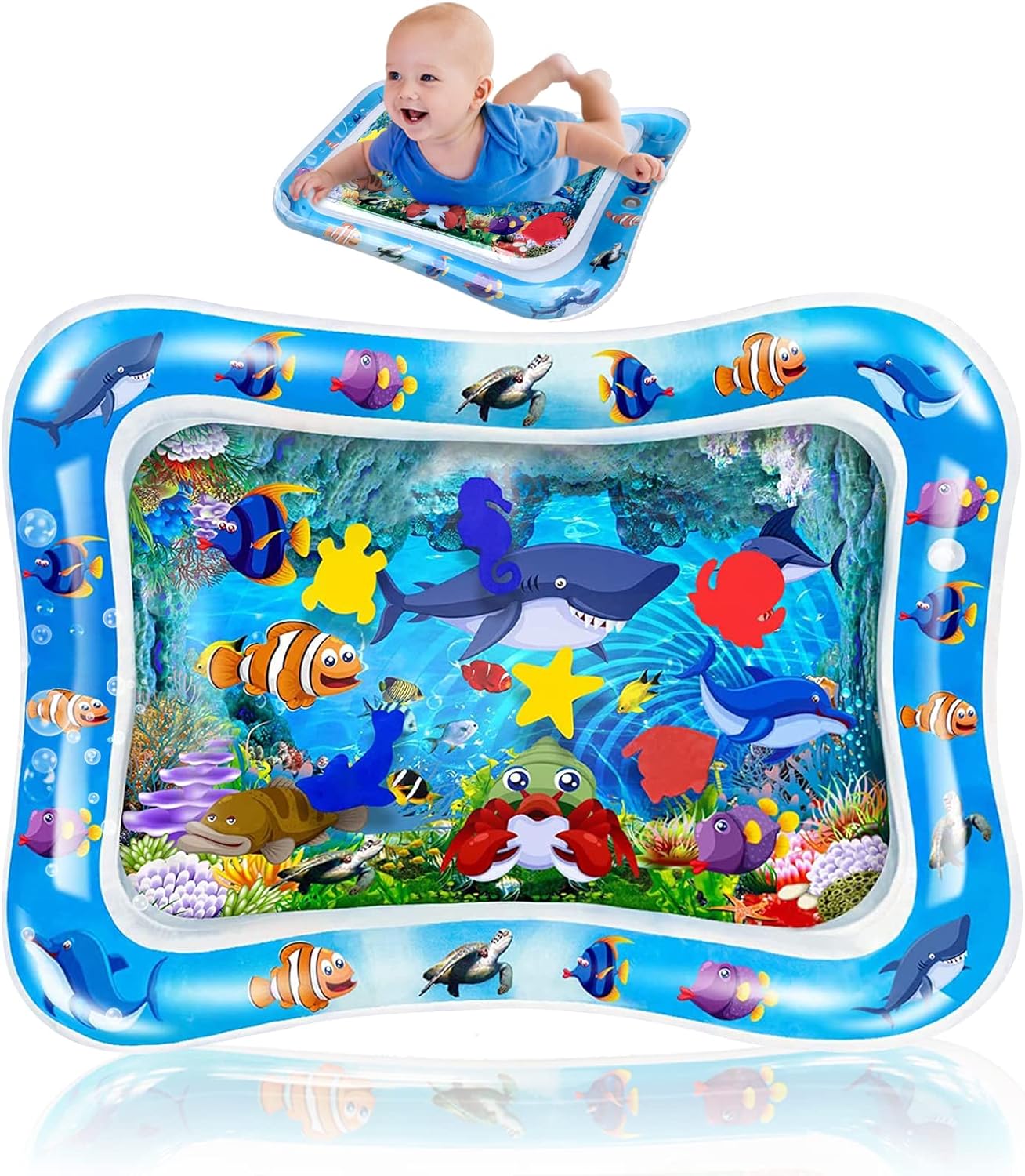 Ce tapis d’eau est absolument génial . Ma fille de 6 mois l’adore . Ça fait des clapotis lorsqu’on appuie dessus . Elle aime même s’allonger dessus . Elle essaie d’attraper les petits poissons . Ça m’occupe un bon moment