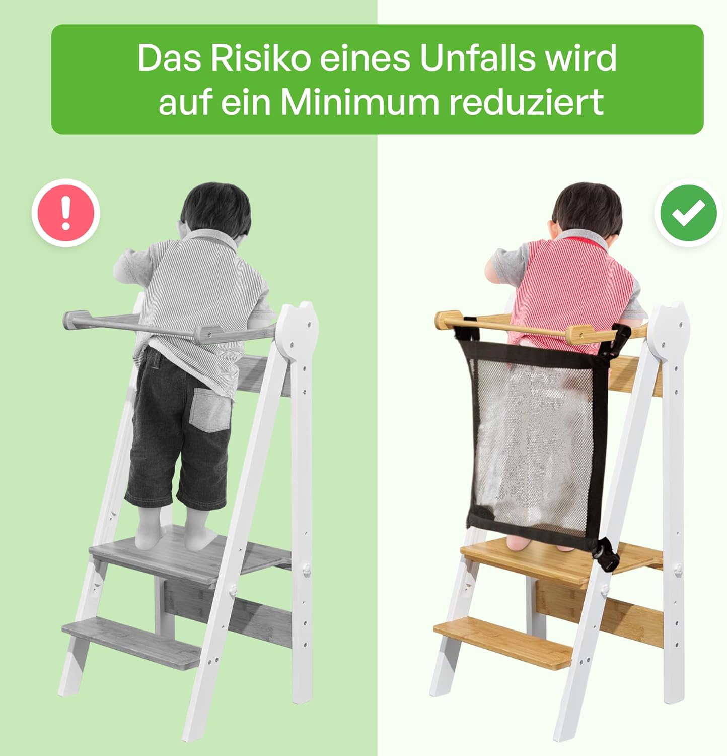 Cette tour d’apprentissage a été pensée pour s’adapter à la vie quotidienne des familles modernes. Grâce à son mécanisme pliable ingénieux, elle peut être facilement rangée lorsqu’elle n’est pas utilisée, optimisant ainsi l’espace dans votre maison. Que ce soit dans la cuisine, la salle de bain ou toute autre pièce, cette tour se déplace aisément pour répondre aux besoins de chaque moment.