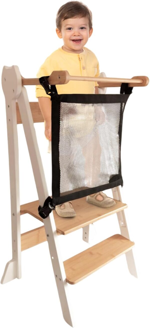 Offrez à votre enfant une autonomie sécurisée avec cette tour d’apprentissage Montessori pliable, en bambou robuste et réglable pour accompagner sa croissance.