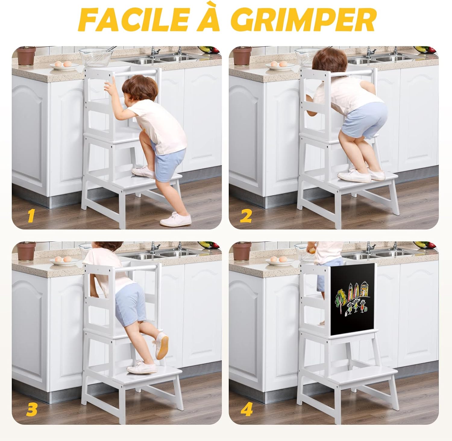 Super achat, ma fille adore monter dessus pour m'aider à cuisiner très stable et le montage était rapide. Le tableau noir est vraiment un plus !
