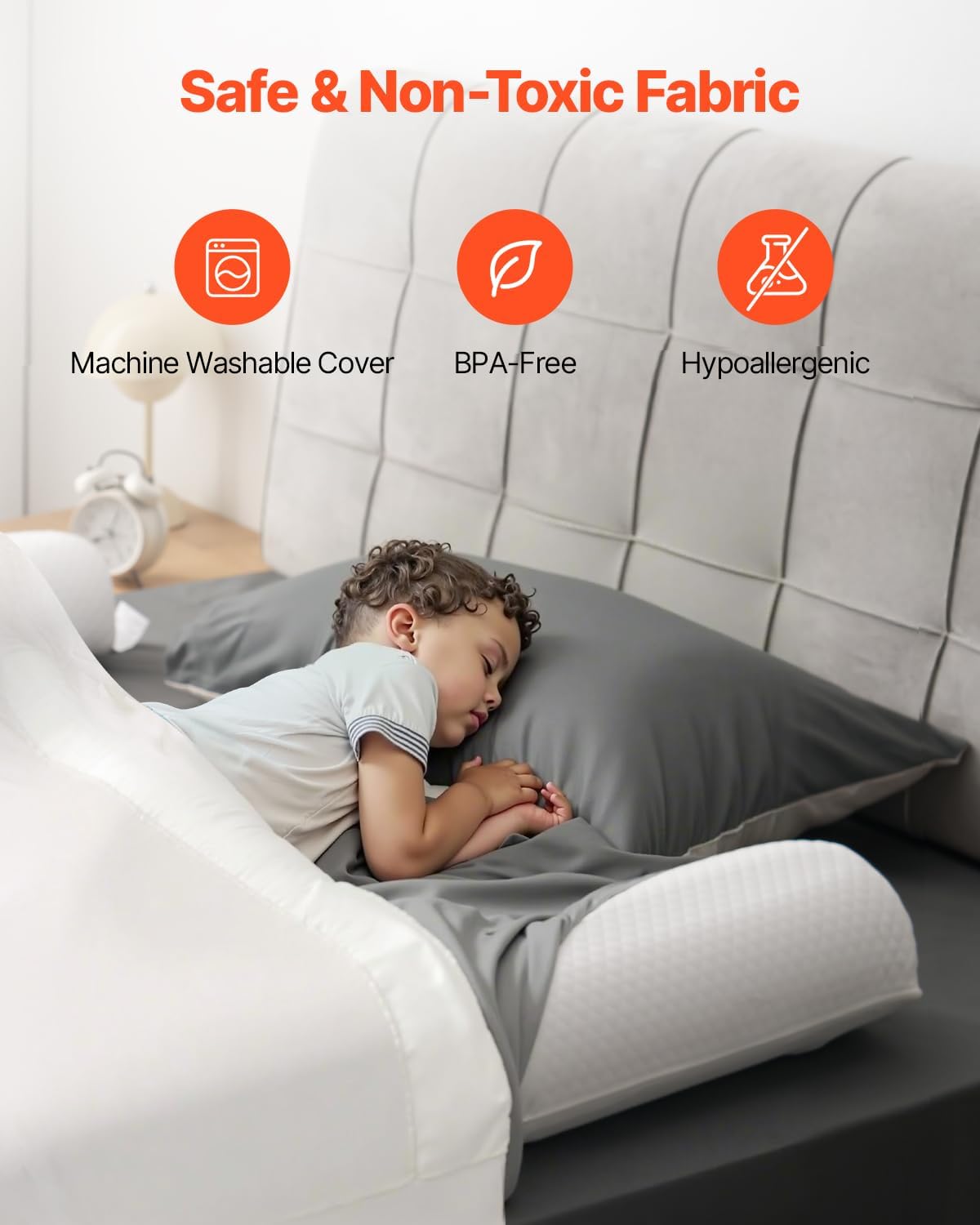 - Matériaux premium : housse douce, non toxique et lavable.