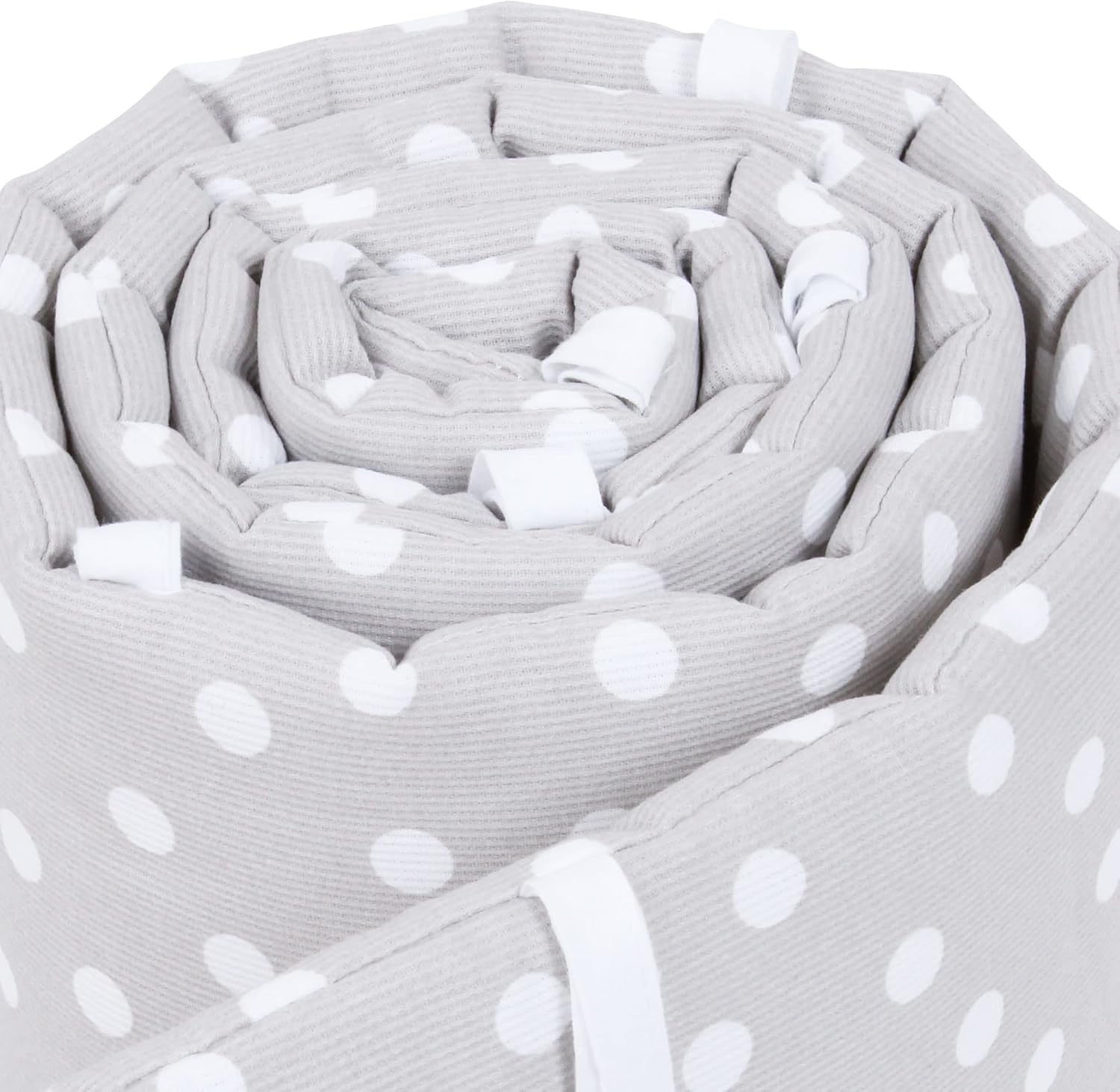 Avec son coloris gris perle ponctué de pois blancs, ce tour de lit s’intègre parfaitement dans toutes les décorations de chambre d’enfant. La structure gaufrée élégante du tissu apporte une touche raffinée tout en conservant un aspect chaleureux et accueillant. Ce design intemporel fait de ce produit un véritable élément décoratif, en plus d’être fonctionnel.