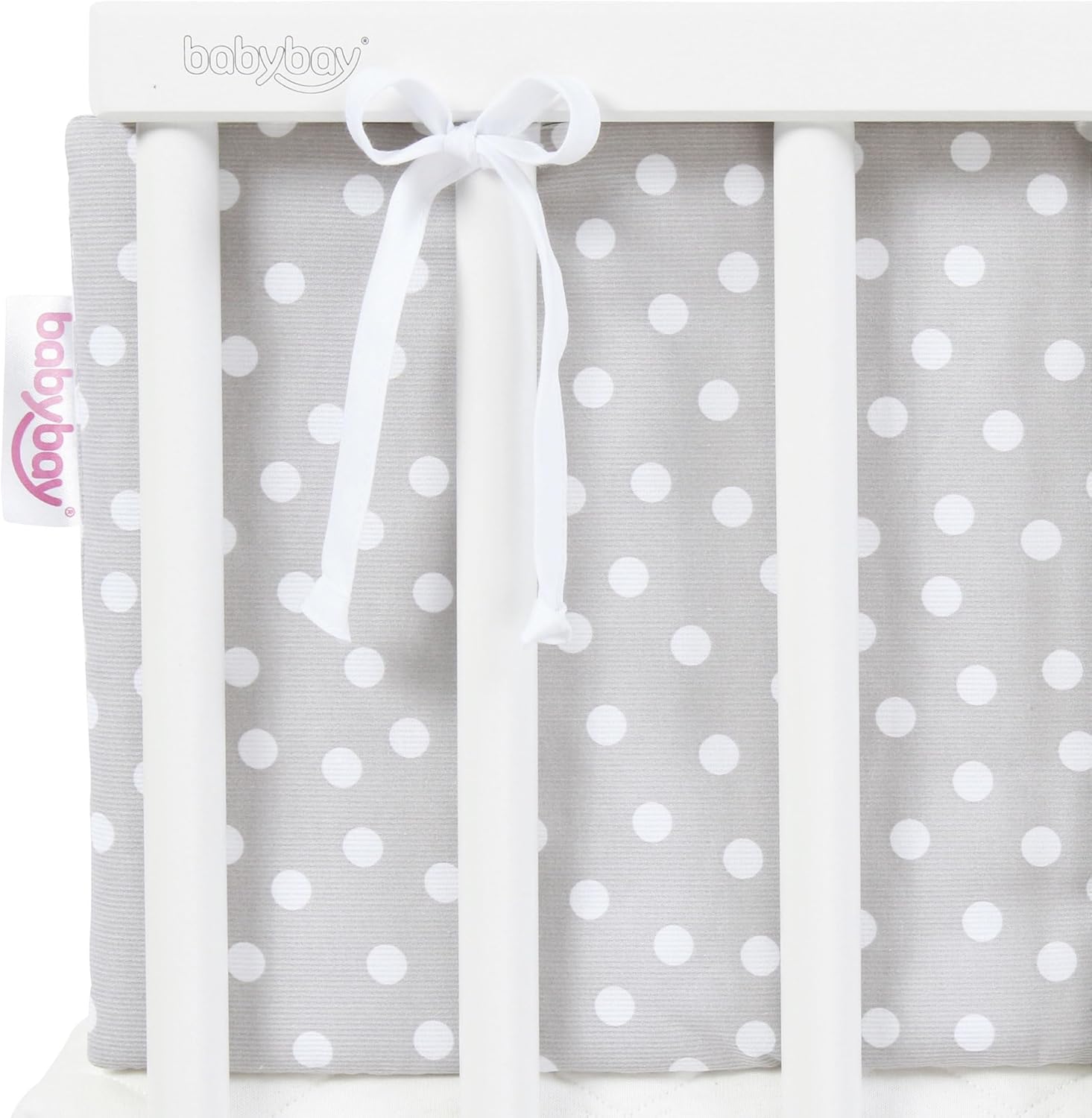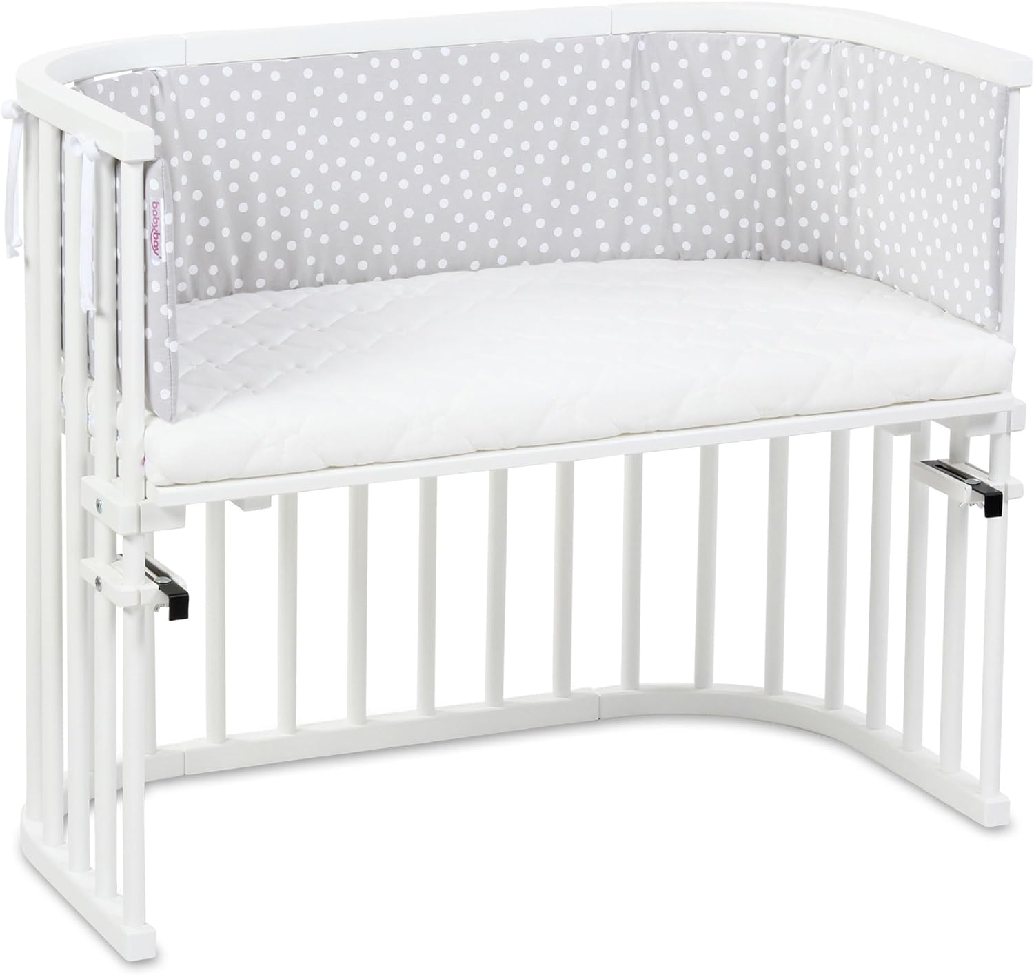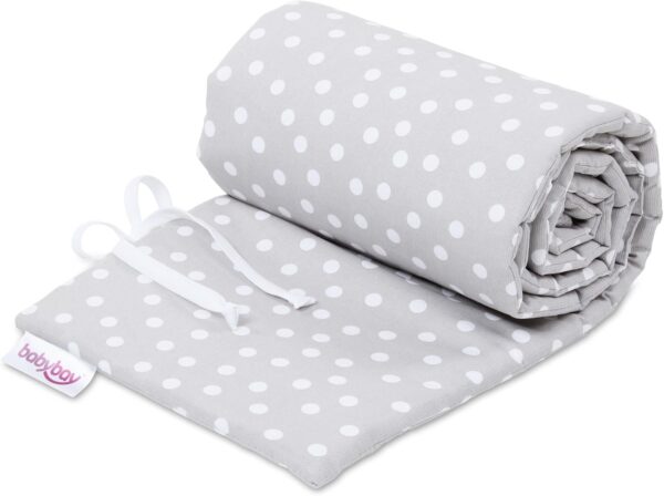 Tour de lit montessori babybay boxspring XXL gris perle à pois blancs