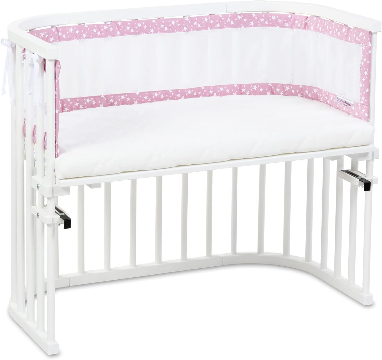 Ce tour de lit est non seulement sécurisant, mais aussi incroyablement pratique à utiliser. Il s’attache facilement au lit grâce à des sangles solides et fiables, garantissant une installation rapide et stable. Sa composition en maille piquée lui confère une texture douce et respirante, parfaite pour la peau délicate des tout-petits. De plus, son motif élégant de couleur framboise parsemé d’étoiles blanches apporte une touche de charme et d’originalité à la chambre de votre bébé.