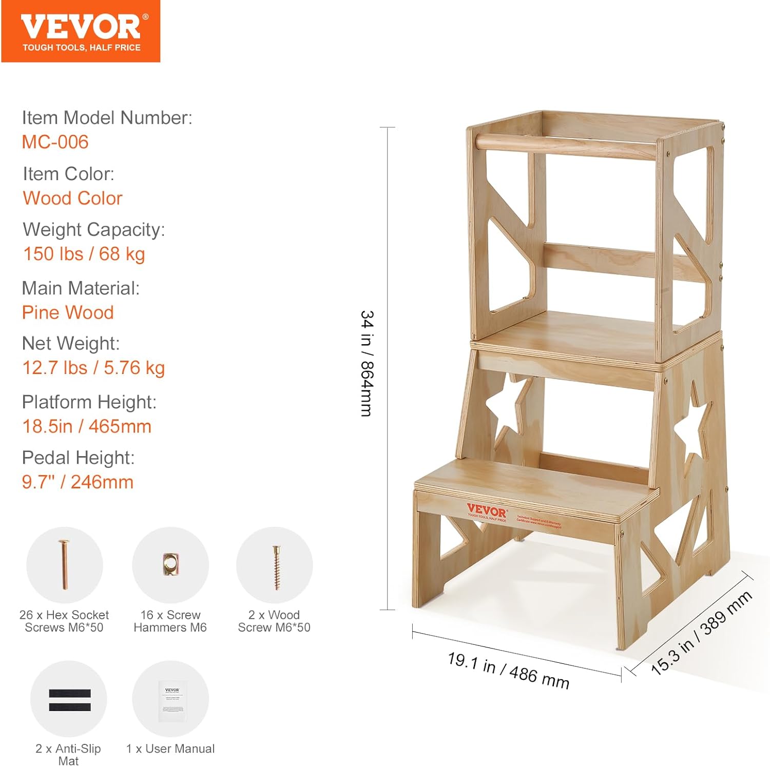 Avec sa plateforme spacieuse et une capacité de charge allant jusqu’à 68 kg, cette tour d’observation est conçue pour s’adapter aux besoins des enfants dès 18 mois. Elle leur permet de se tenir debout en toute sécurité et de participer activement aux activités familiales. C’est un véritable atout pour développer leur confiance en eux et leur sens de l’indépendance dès le plus jeune âge.