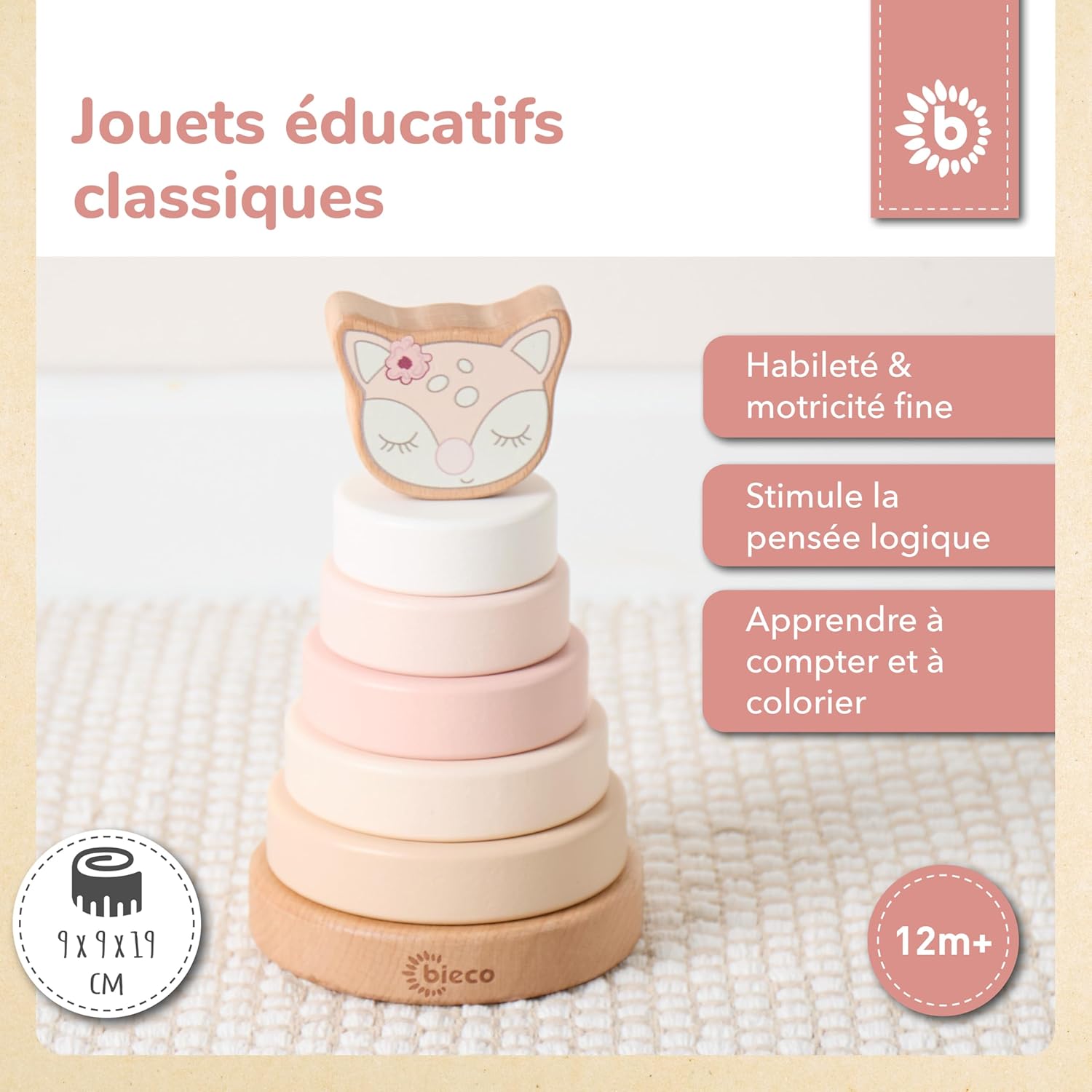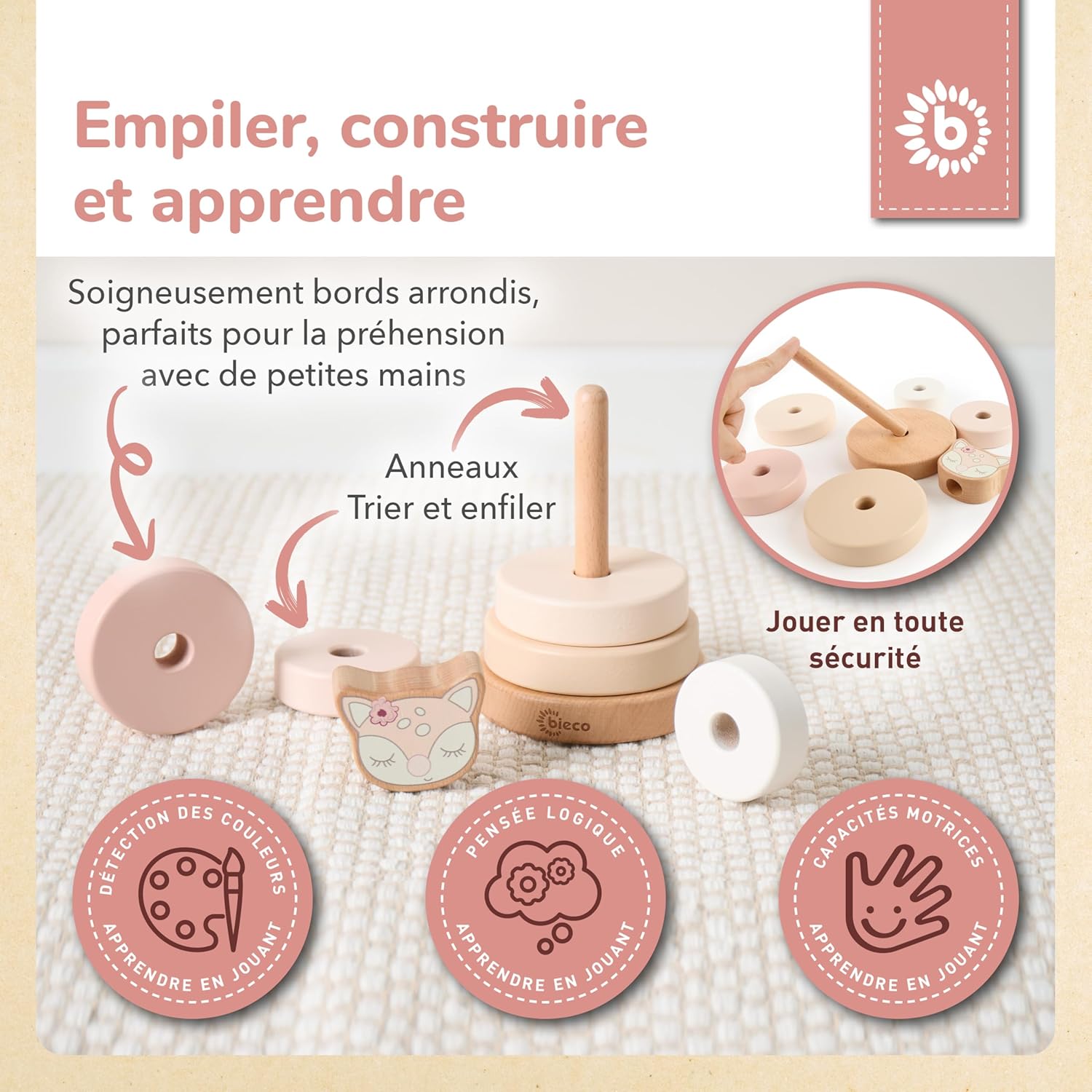 Laissez cette tour empilable devenir le compagnon favori des premières années d’éveil de votre tout-petit !