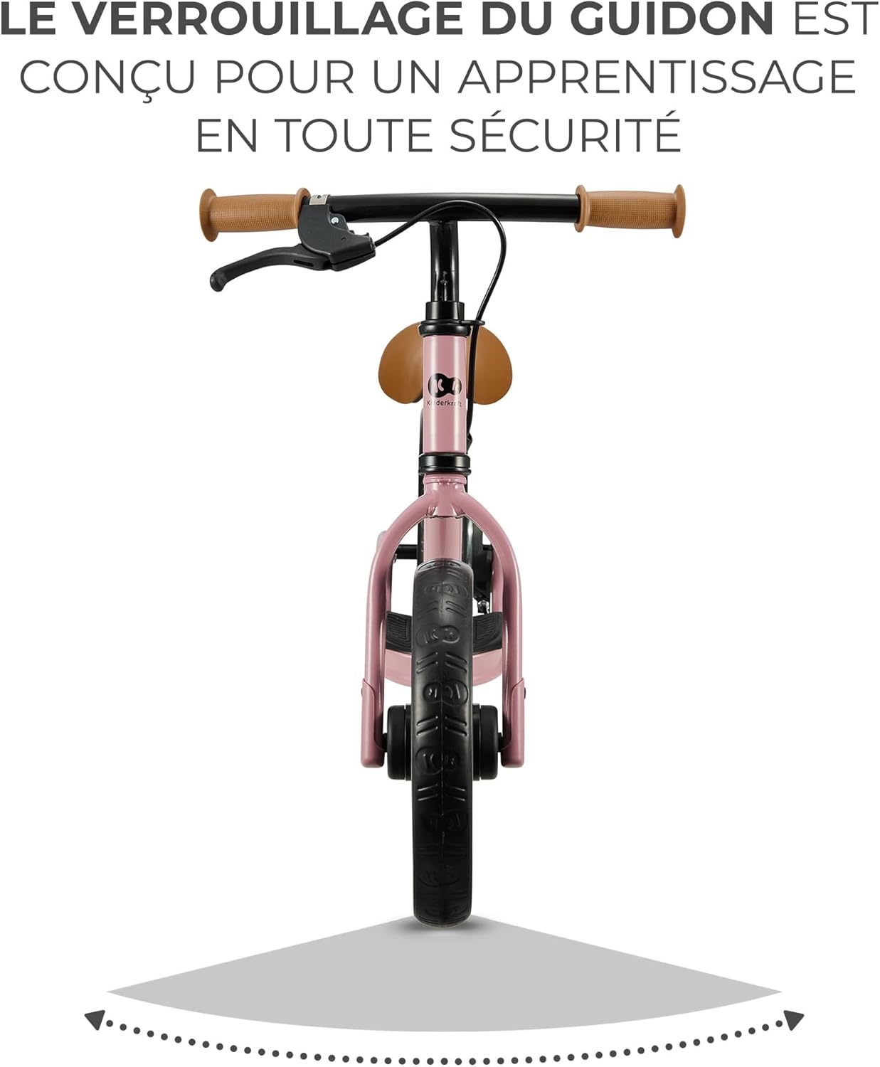 Parce que la sécurité de votre enfant est une priorité, ce vélo draisienne est équipé d’une direction limitée qui prévient les mouvements brusques et réduit ainsi le risque de chutes. Le guidon est muni d’un frein à main facilement accessible, permettant à votre enfant de s’arrêter rapidement et en toute sécurité. Les poignées antidérapantes offrent une prise ferme et confortable, même lors des sorties les plus dynamiques.
