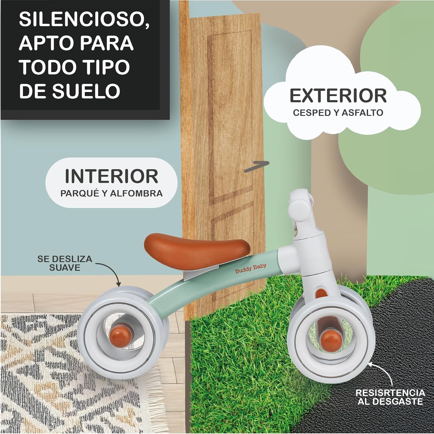 Avec un poids plume de seulement 1,5 kg, cette draisienne est incroyablement facile à manipuler pour les petits bras. Ses 4 roues rembourrées en EVA sont non seulement silencieuses, mais également parfaitement stables, permettant une utilisation fluide sur différents types de surfaces. La poignée en TUP antidérapante assure une prise en main sécurisée et confortable, idéale pour les petites mains curieuses.